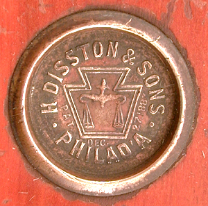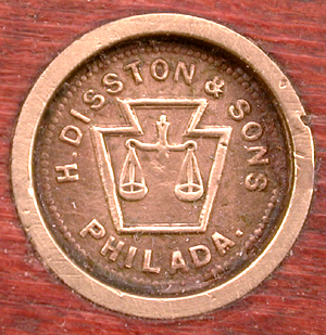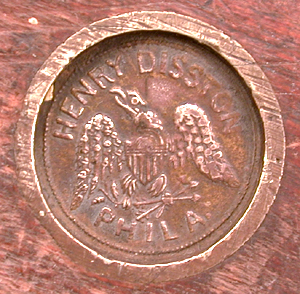 This version of the medallion is nearly identical to the last, with a few very subtle differences. The eye and neck feathers are even less refined than before. The dots surrounding the perimeter are slightly thicker. Of particular note is the spurious use of a "dot" following the "N" in "Disston" and the "A" in "Philada". From here on out until the advent of the regular domed nuts, we will see many uses of stray "dots" in places and which don't really make much sense. It is a useful tool to arrange the medallions in order, however.