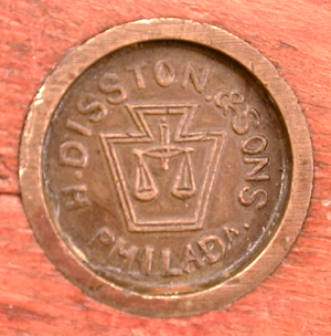 Similar in style to the medallion above, with the most noticeable change being the simplification of "Henry Disston and Sons" to simply "Disston". In addition, the "Philada" is simplified to "Phila". The keystone, although nearly identical to the previous one, is slightly larger.